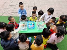 - Tương tự cô cho trẻ nhặt tất cả vật nổi và vật chìm bỏ vào trong 1 bể nước