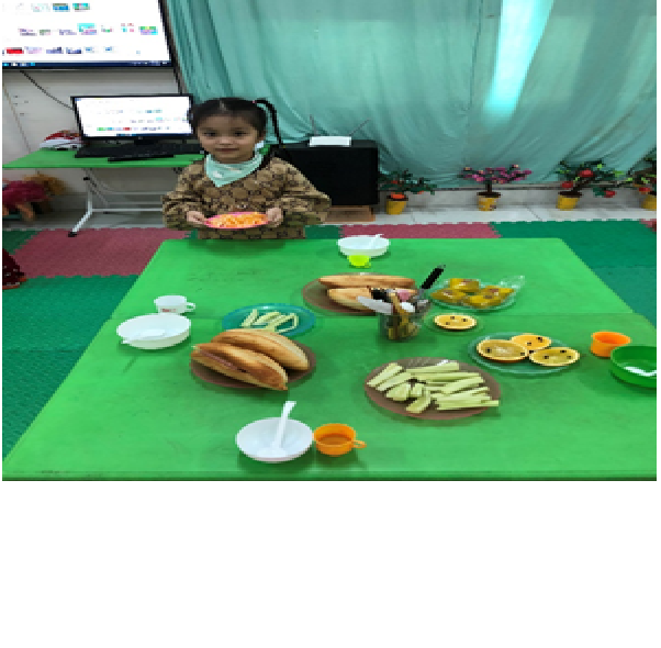 Rèn luyện sự khéo léo, kiên nhẫn hoàn thành công việc đến cùng là một kĩ năng quan trọng trong cuộc sống của trẻ. Bên cạnh việc rèn kỹ năng sống trong các hoạt động giờ học, giờ vui chơi, các con còn được “ tập làm nội trợ” cùng chiếc bàn ăn với những món ăn vô cùng ngộ nghĩnh và thú vị. Buổi họp mặt “ gia đình khéo tay” rộn rã tiếng cười và đầy ắp niềm vui. Nhìn từng ngón tay nhỏ xíu gắp từng miếng xúc xích, dưa chuột làm lên những chiếc bánh mì be bé, xinh xinh..niềm vui, niềm hạnh phúc của các con càng thêm lan tỏa. Học nấu ăn giúp các con biết trân trọng món ăn do mình tự làm ra, giúp con tự lập, phát huy tính thẩm mĩ khi con biết tự bày trí món ăn sao cho đẹp mắt
