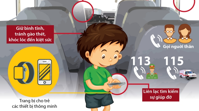 Khi bị bỏ quên trên xe, trẻ rất dễ rơi vào tâm lý hoảng loạn, gào thét, khóc lóc khiến cơ thể nhanh chóng mệt mỏi, kiệt sức, từ đó bỏ qua những cơ hội tăng khả năng thoát ra. Vì vậy, việc đầu tiên cần làm trong tình huống này là giữ bình tĩnh, tìm cách tự thoát ra hoặc báo hiệu cho người xung quanh về tình trạng của mình.