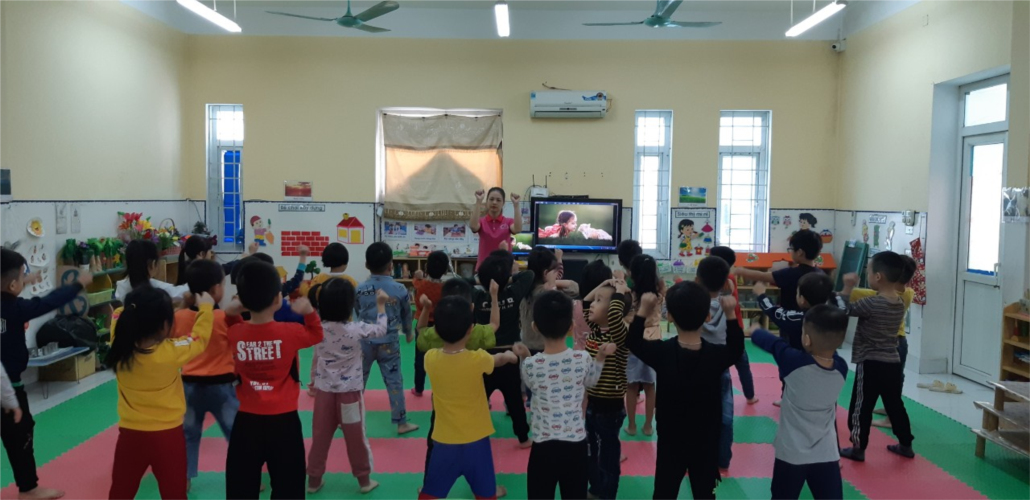 - Cô khen và động viên trẻ. Cho trẻ vận động nhẹ nhàng chuyển hoạt động.