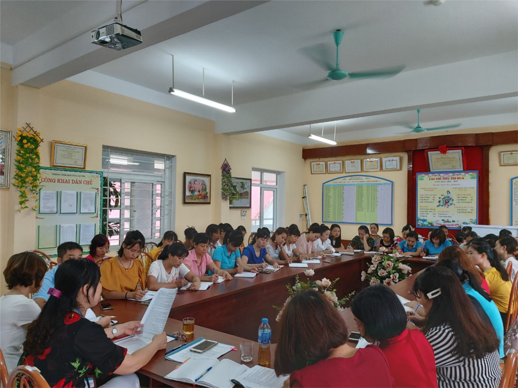 Đúng 17h00 phút, toàn thể cán bộ giáo viên công nhân viên nhà trường (trừ một số đồng chí nghỉ ốm) tham dự cuộc họp khẩn. Trong cuộc họp đ/c hiệu trưởng công bố quyết định thành lập BCĐ phòng chống dịch. Đ/c cũng đã phổ biến đến GV các công văn của cấp trên về cách phòng dịch bệnh, yêu cầu các đ/c GV tuyên truyền tới phụ huynh và các con học sinh các biện pháp phòng chống dịch bệnh tại trường cũng như tại gia đình. Đó chính là:
